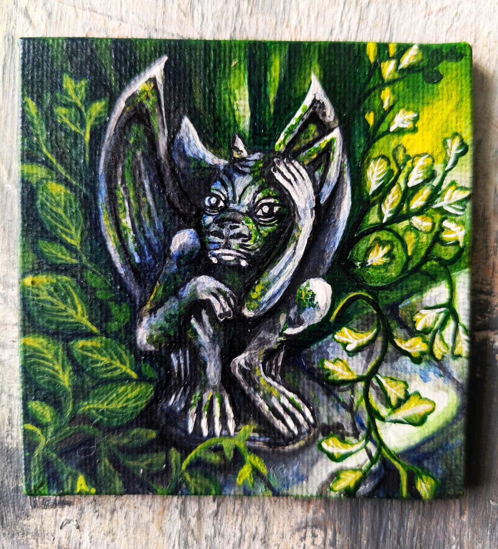 If you like gardens and little gothic statues, you may enjoy this small hand-painted magnet. It is a perfect decoration for your fridge or any other similar surface.